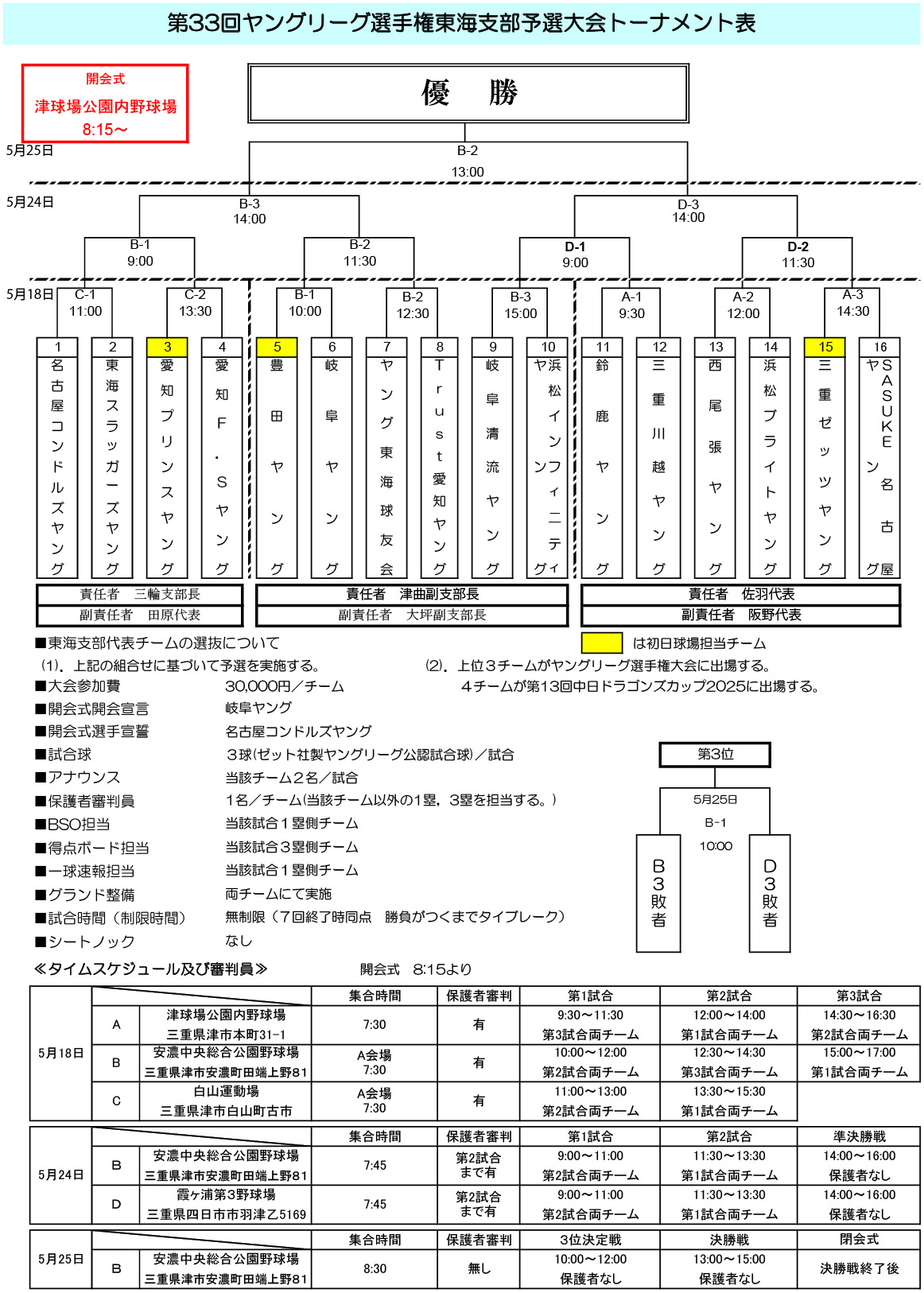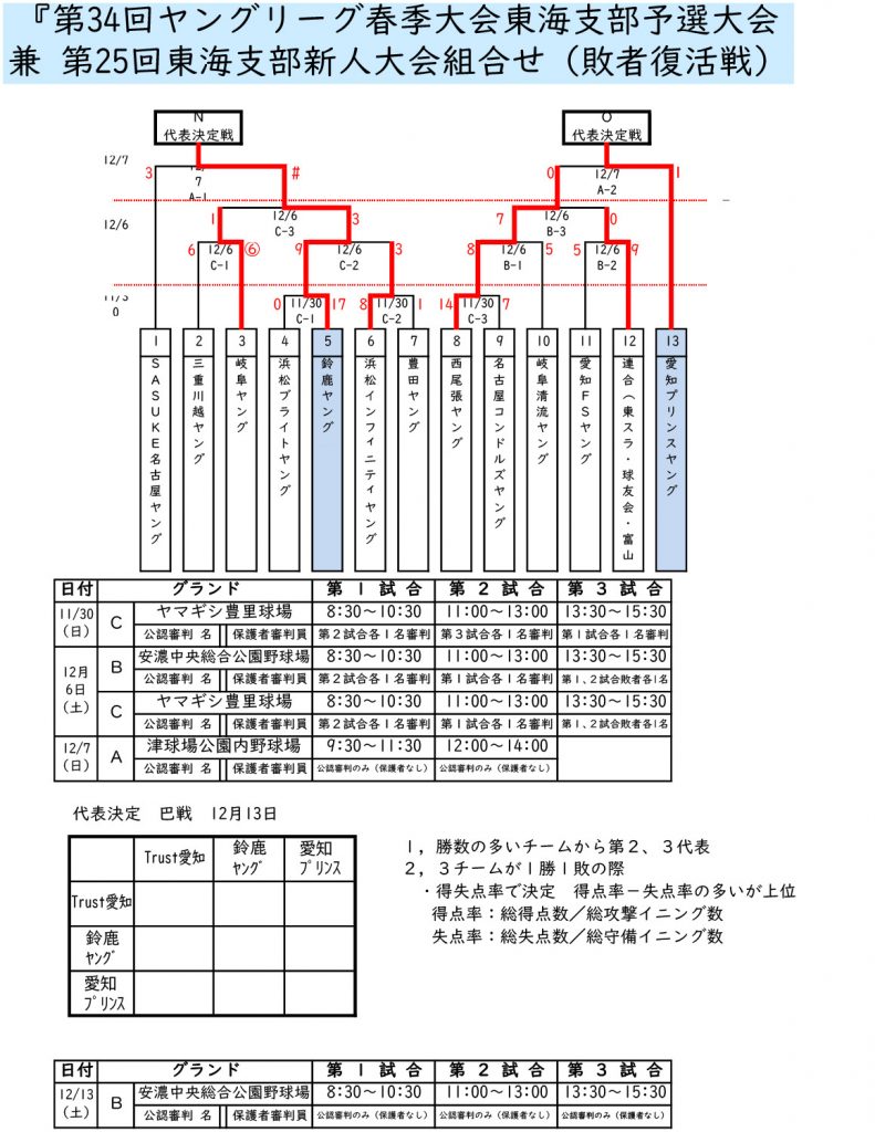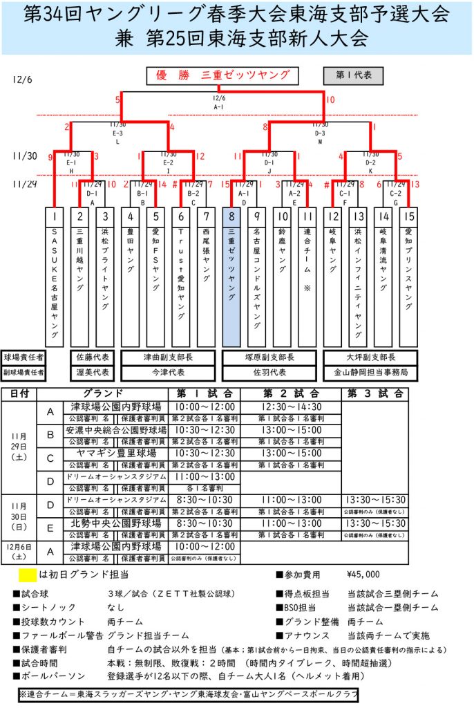 第34回ヤングリーグ春季大会東海支部予選 兼 第25回東海支部新人大会
